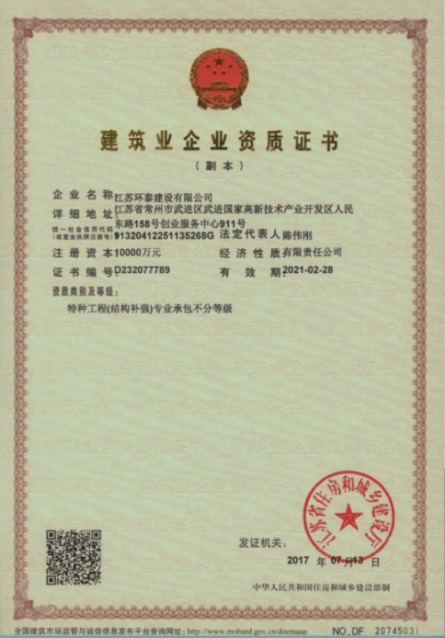 建筑業(yè)企業(yè)資質(zhì)證書(副本)
