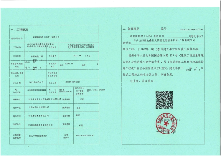 年產(chǎn)11GW項(xiàng)目-竣工驗(yàn)收備案表