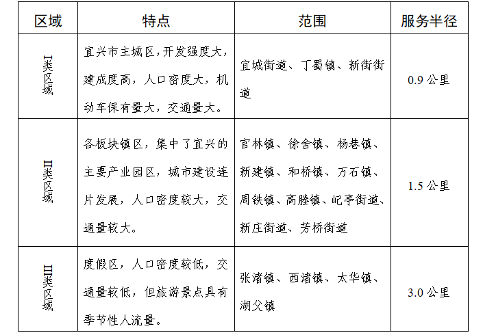 宜興市區(qū)公共充電設施建設三類區(qū)域劃分表