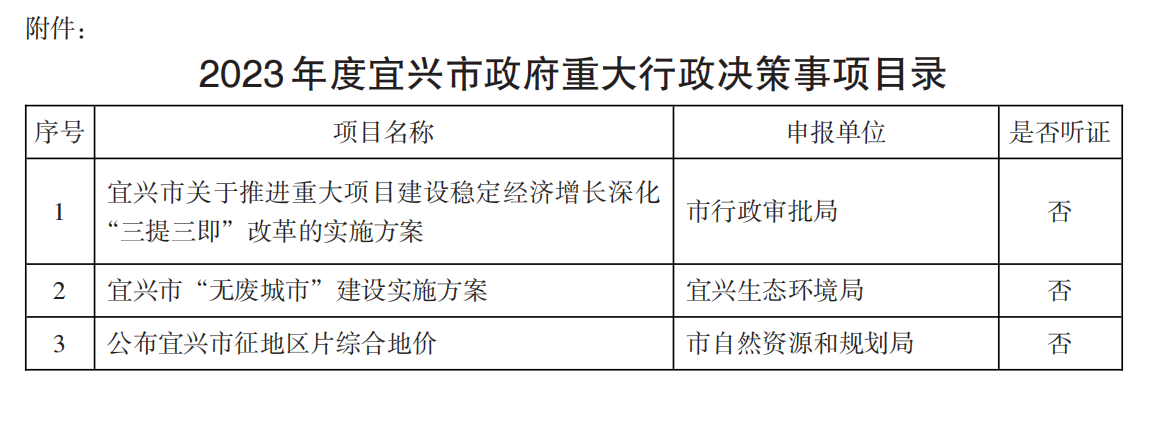 附件:2023年度宜興市政府重大行政決策事項(xiàng)目錄
