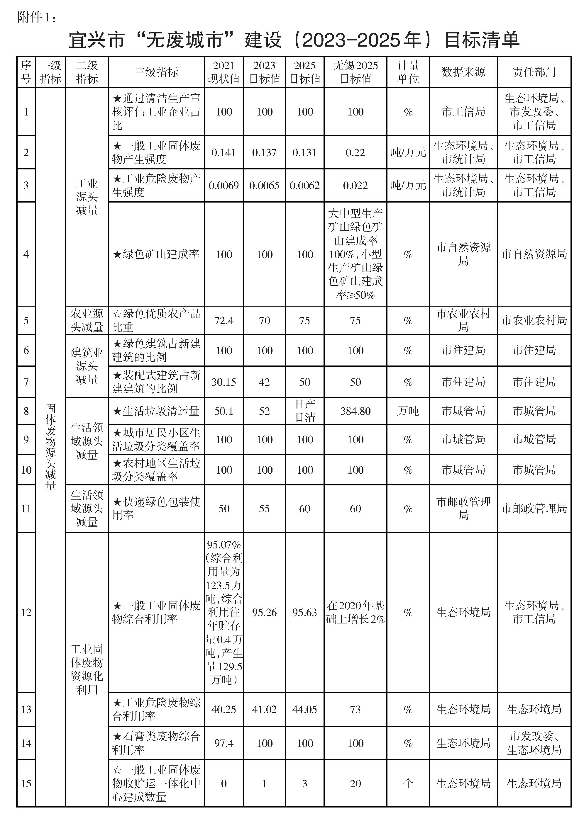 附件:1、宜興市“無廢城市”建設(shè)(2023-2025年)目標(biāo)清單