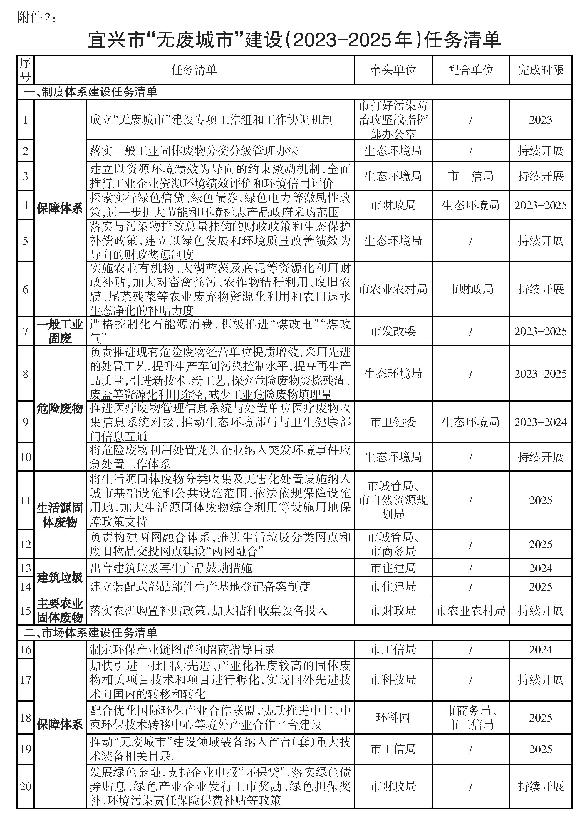 2、宜興市“無廢城市”建設(shè)(2023-2025年)任務(wù)清單