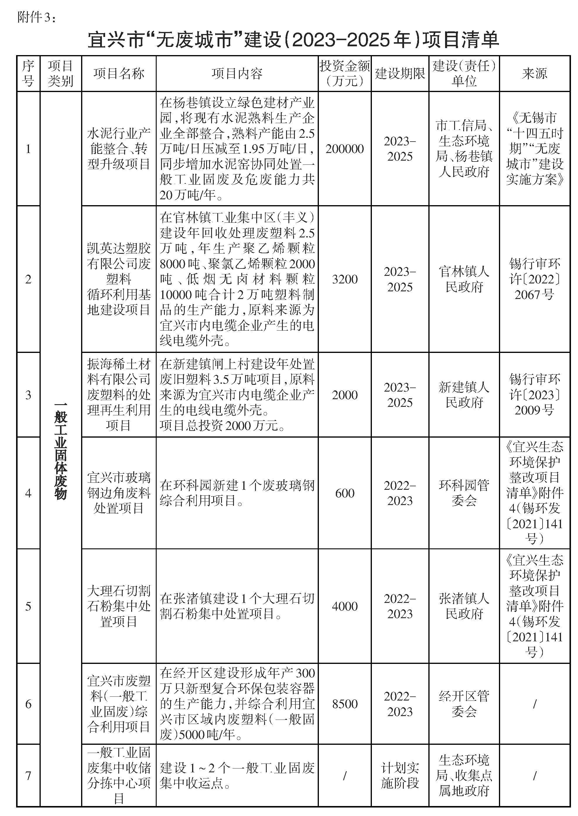 3、宜興市“無廢城市”建設(shè)(2023-2025年)項(xiàng)目清單