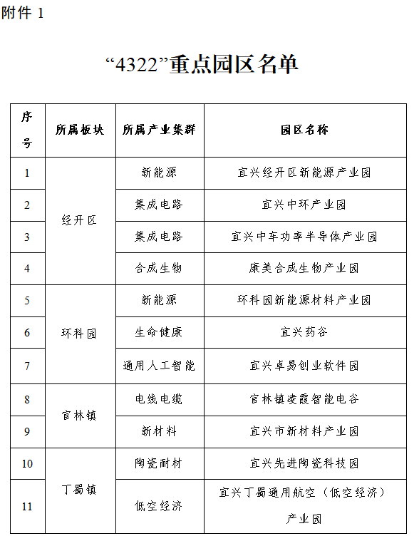 附件1、“4322”重點(diǎn)園區(qū)名單