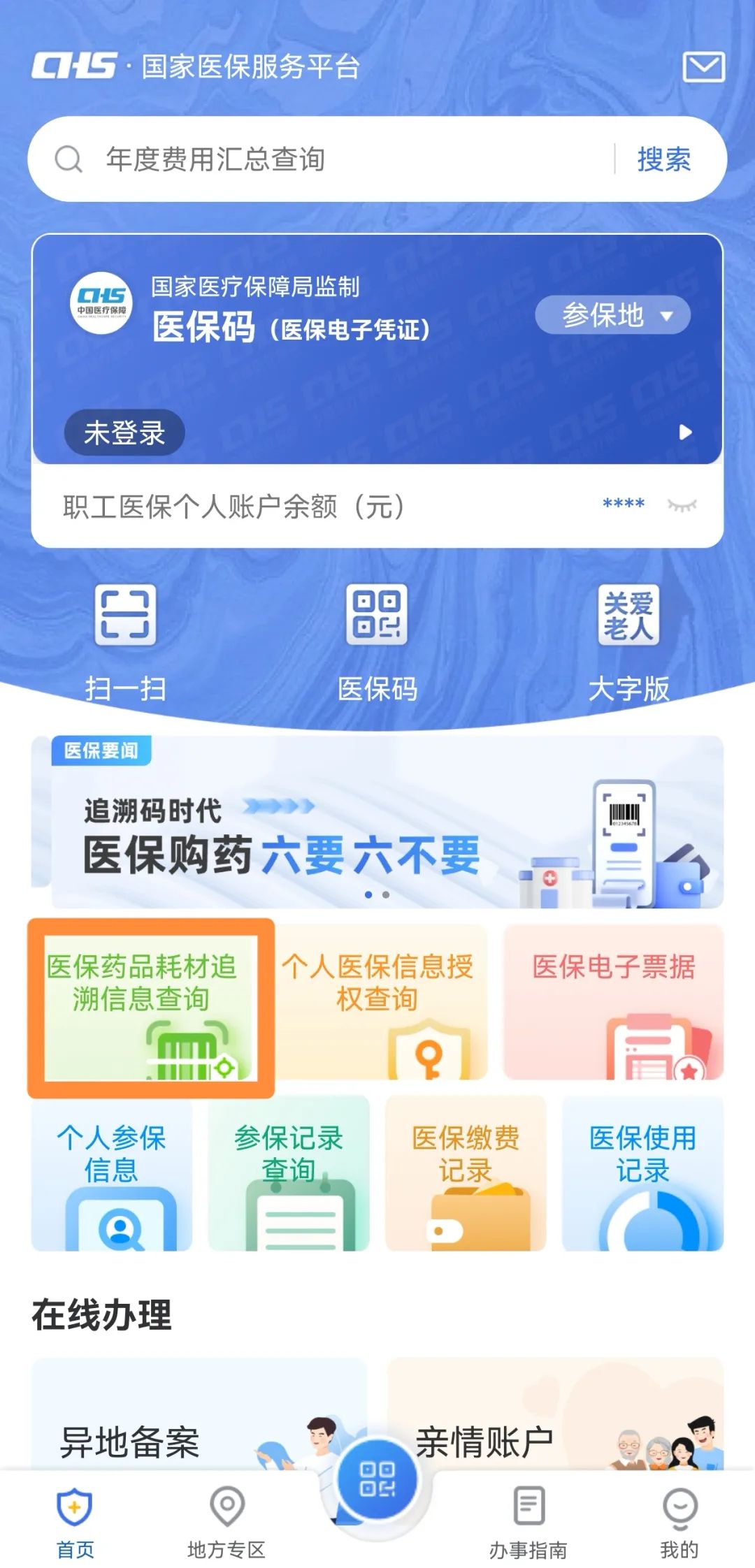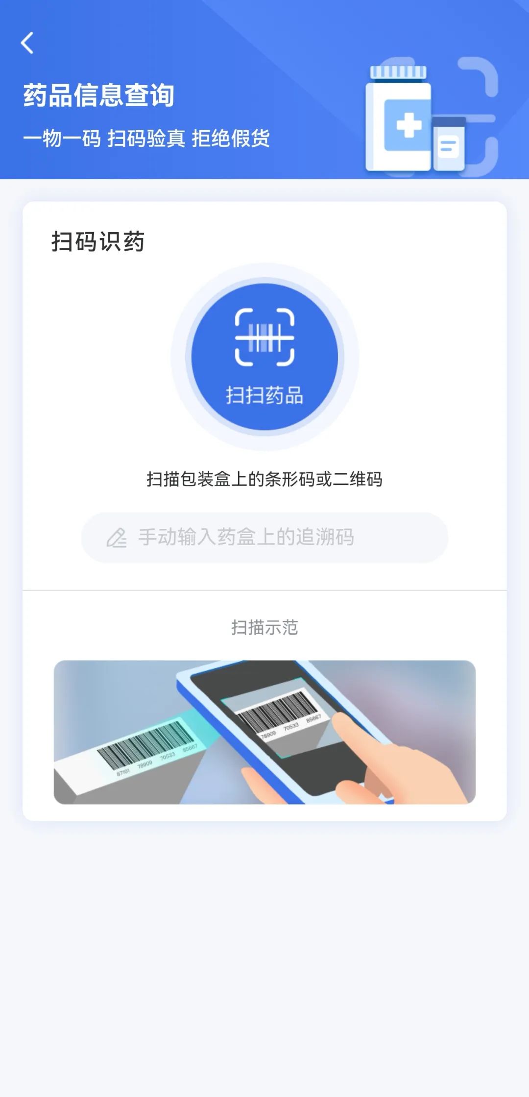 1.手機下載國家醫(yī)保服務平臺App,在其中的“醫(yī)保藥品耗材追溯信息查詢”功能版塊,購藥者可通過掃描藥盒上的藥品追溯碼,獲取詳細的藥品生產、流通、銷售信息。