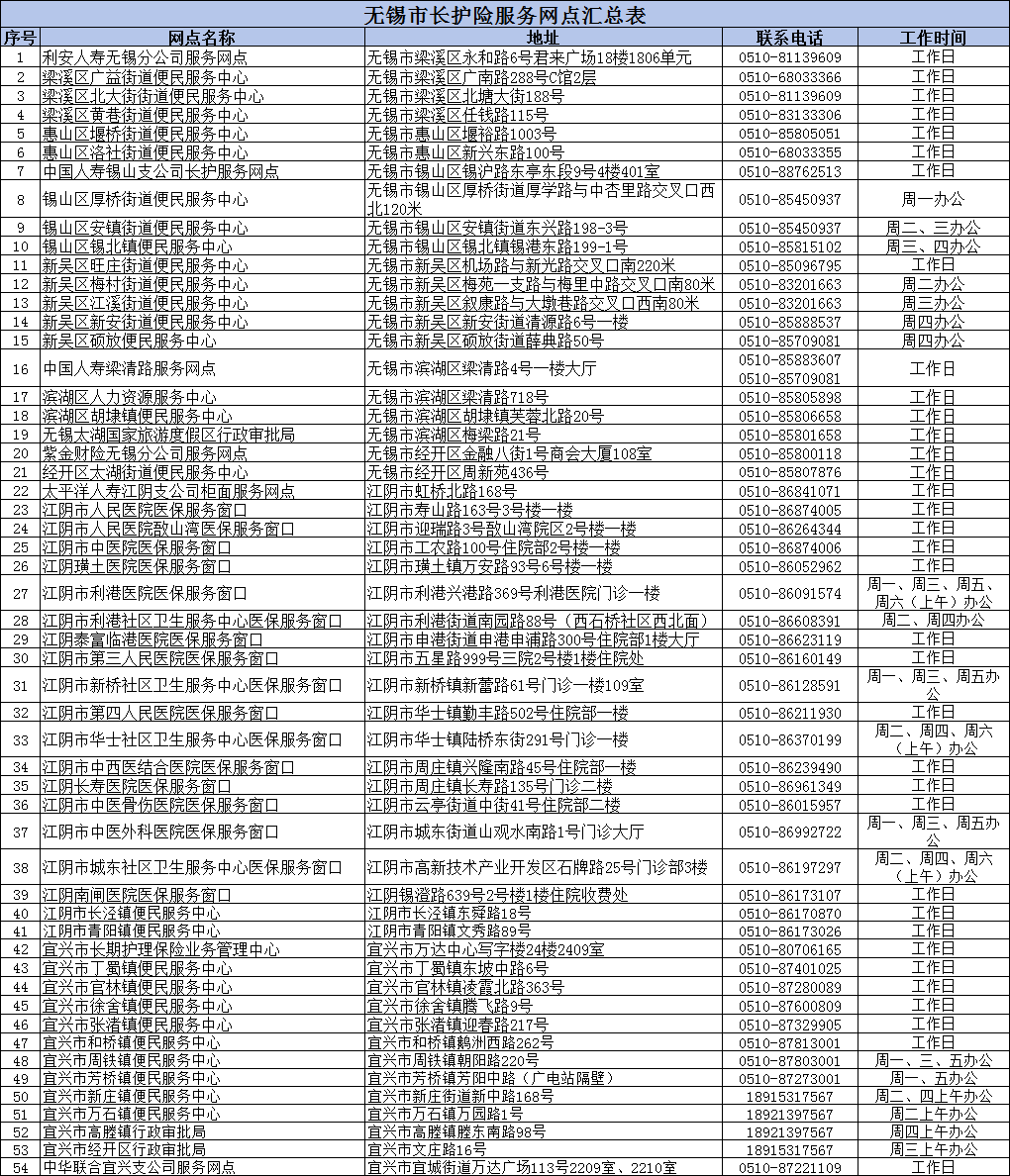 參保人也可就近去長(zhǎng)護(hù)保險(xiǎn)受理窗口申請(qǐng)(詳情見下表)