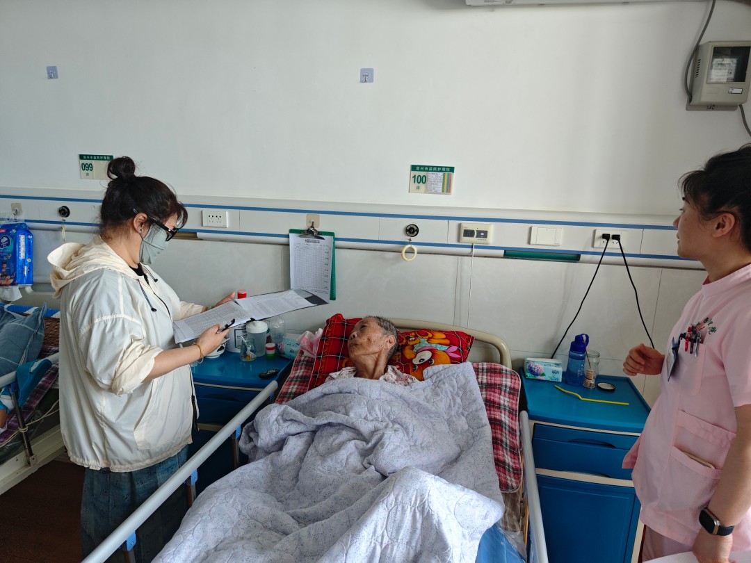 工作人員回訪定點(diǎn)機(jī)構(gòu)中享受長護(hù)險(xiǎn)的參保人